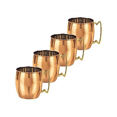 OS428 Features: -Includes 4 mugs. -Polished copper finish. -Durable copper construction. -Capacity: 16 oz. Old Dutch Moscow Mule Mugs, Set of 4 Copper barreled with brass handle Nickel interior lining Lacquered to protect from tarnishing Must wash off lacquer layer before use